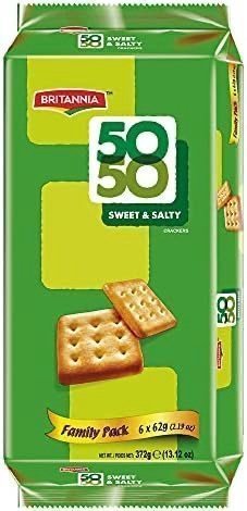 Get the best of both worlds with BRITANNIA 50-50 Sweet & Salty biscuits. Perfect for family snacking, enjoy this delightful balance of flavors anytime.