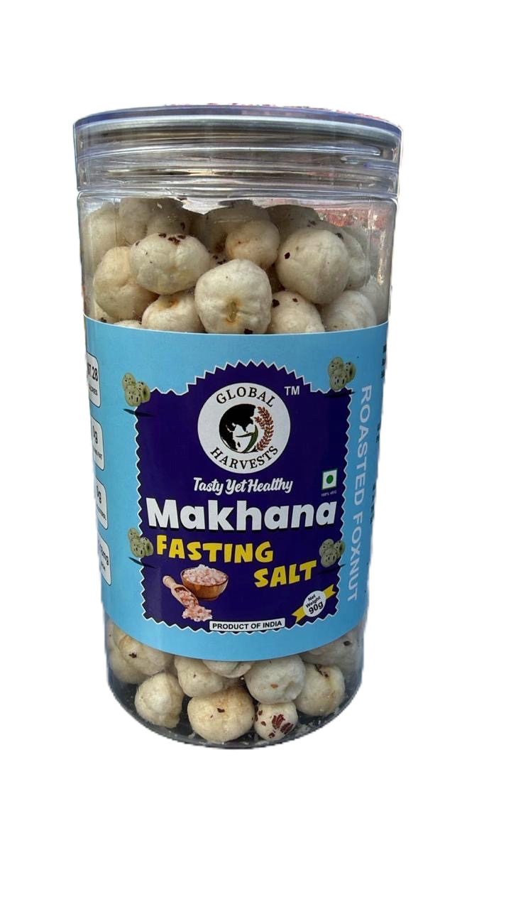 Global Harvests Makhana Fasting Salt 90G: A healthy and delicious snack perfect for fasting or anytime, made from popped lotus seeds and seasoned with fasting-friendly salt.