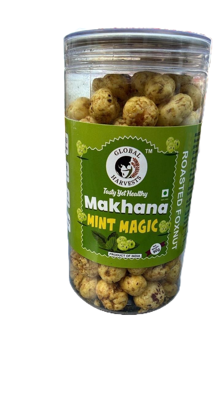 Global Harvests Makhana Mint Magic 90G offers a healthy and flavorful snacking experience. These popped lotus seeds, also known as fox nuts or makhana, are air-popped to a light and crispy texture. The “Mint Magic” flavor features a refreshing blend of mint and other complementary spices, providing a unique and invigorating taste. Makhana is naturally low in calories and fat, and a good source of protein and fiber, making it a guilt-free snack alternative to traditional chips or popcorn. This 90-gram pack is perfect for on-the-go snacking, adding to lunchboxes, or enjoying as a light and satisfying treat any time of day. It’s a delicious and healthy way to experience the traditional Indian snack, now with a modern and refreshing twist.