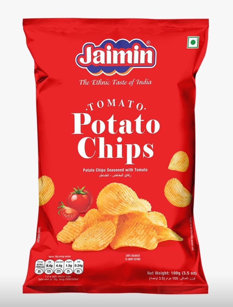 Enjoy the perfect crunch and bold flavor of Jaimin Tomato Potato Chips, made from premium potatoes and seasoned with a tangy tomato blend. Ideal for snacking anytime, these chips deliver a deliciously crispy experience that keeps you coming back for more. Perfect for sharing or enjoying on your own, they make a tasty addition to your pantry and snack collection.