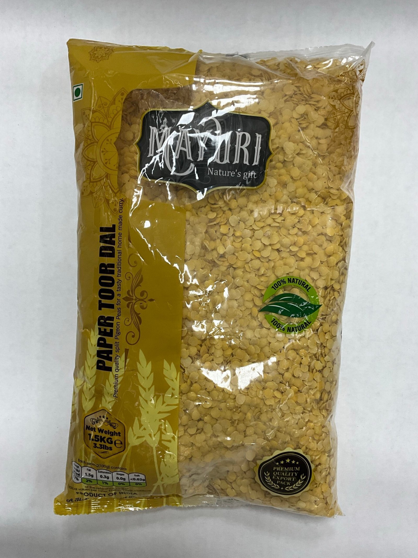 Mayuri Paper Toor Dal 1.5kg: Premium split pigeon peas in a convenient 1.5kg pack. Ideal for enhancing protein and flavor in your beloved Indian recipes.