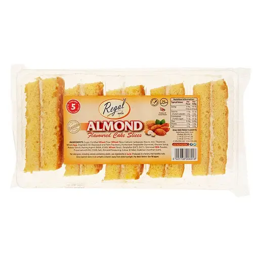 Regal Almond Cake Slices 230g: Indulge in our delectable almond-flavored cake slices, ideal for a delightful sweet treat or snack.