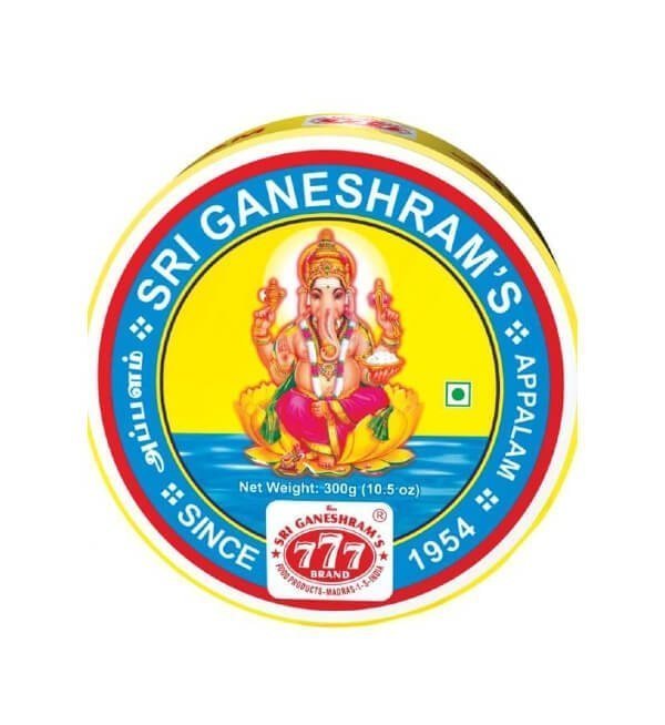 Sri Ganeshram’s Appalam 300g: Enjoy the crispy and flavorful taste of South Indian papad crafted from premium lentil flour and spices. Ideal for snacking or as a delectable side dish with your meals.
