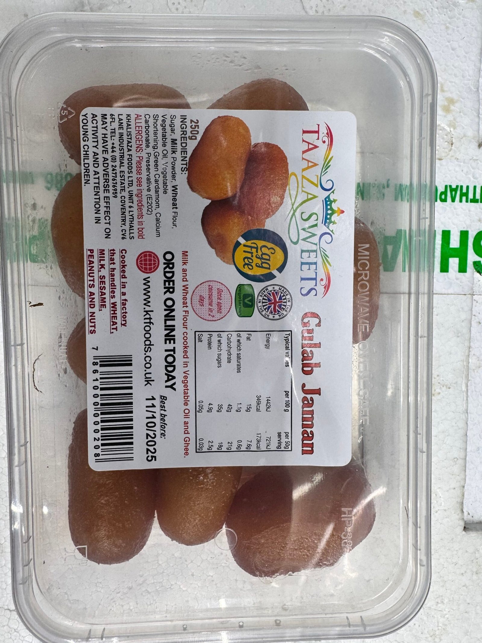 Indulge in the authentic taste of TAAZA Sweets Gulab Jaman, a classic Indian dessert made with rich, soft dough balls soaked in aromatic sugar syrup—perfect for celebrations or sweet cravings from your trusted grocery store.
