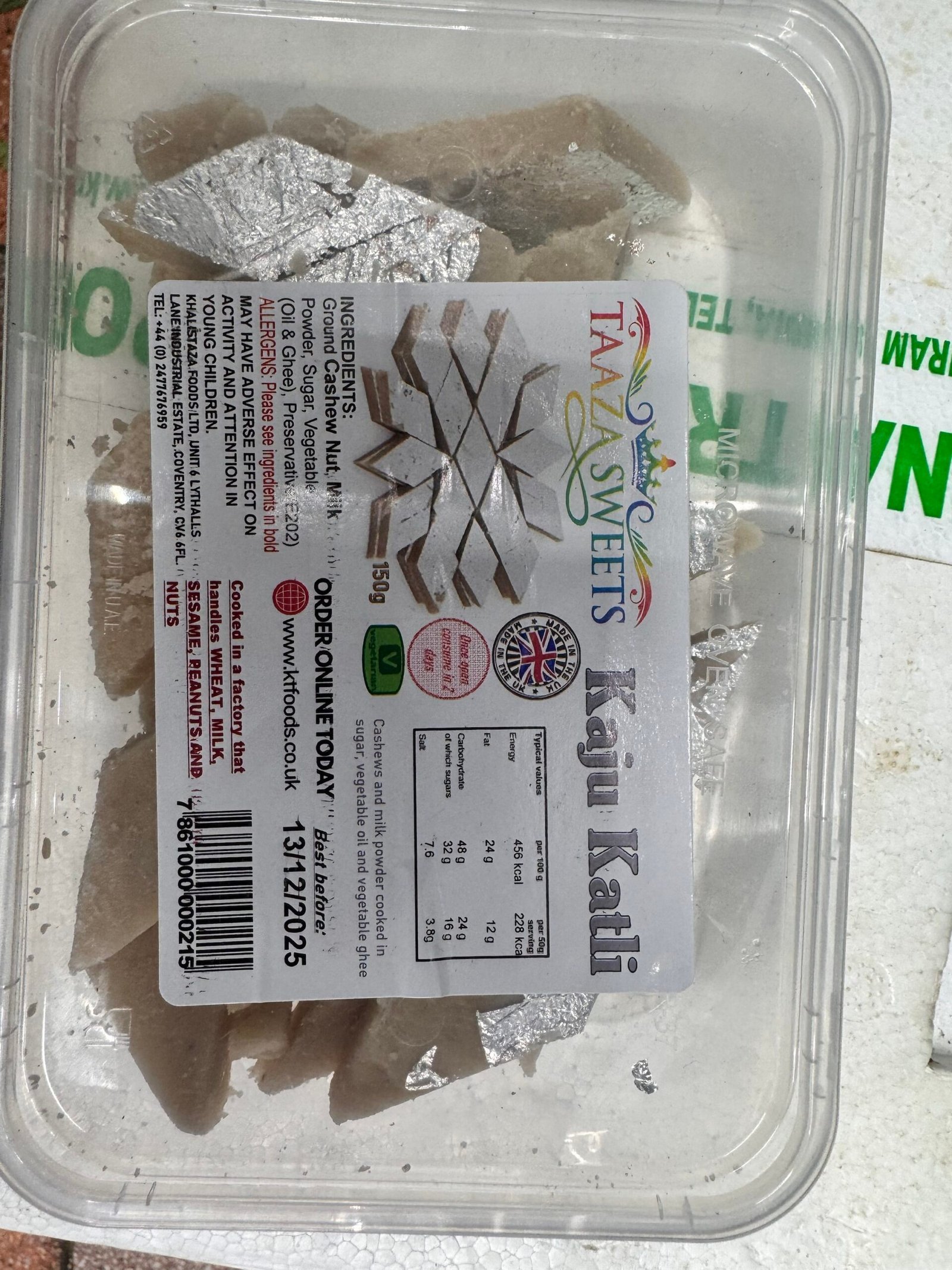 Indulge in the rich taste of TAAZA Sweets Kaju Katli, a premium Indian sweet made from fine cashews and pure ghee, perfect for festive gifting or satisfying your sweet cravings.