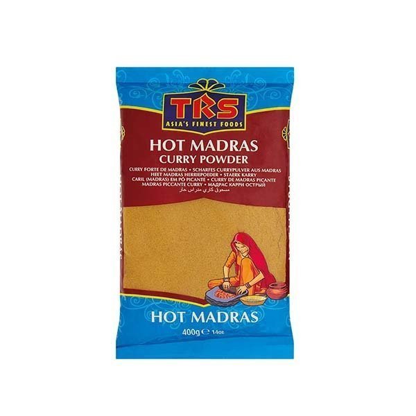 TRS Hot Madras Curry Powder 400g: Elevate your dishes with this fiery blend of aromatic spices, delivering an authentic South Indian flavor. Ideal for crafting delicious and spicy curries, stews, and marinades.